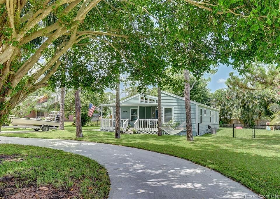 Come see this Charming Key West Style 3 Bedroom 2 Bath Home located in one of the best areas in Palm City. This quiet & peaceful neighborhood has no HOA. There was no expense spared in this beautiful totally renovated home. Just some of the homes features are, New Roof 2021, Hurricane Impact Windows, Hardie-plank siding, Fenced yard, back yard storage shed, Circular driveway on the exterior. The light & airy interior features Wood & Tile flooring, New appliances, new lighting, new plumbing fixtures and much more. This home sits on a large lot with room for a pool and your golf cart, boat or RV too! This home is move in ready and close to "A" rated schools, shopping, Dining, Entertainment, and more.