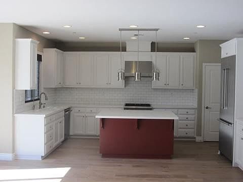 Two Story, New Construction, Corner Lot, 4 Bedrooms (1 Bedroom & Bath downstairs), 3 Baths, 2 Car garage with remotes, approximately 2113 Sq., A/C, Eat-In Kitchen features Breakfast Bar, Thermador 4 burner gas stove, dishwasher, large sink, one large oven, microwave, wine cooler, refrigerator, and slider to back patio area, Great Room open to Kitchen with recessed lighting and built-in T.V. plugs, Upstairs large Loft area, Inside Utility Room with cabinets, washer and dryer, Master Bedroom with 2 walk in closets and built in speakers, Backyard with patio, Gardener included! Call 408-778-4932 for more information.
