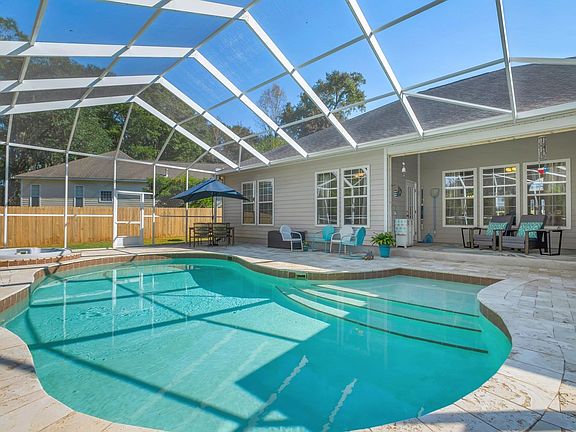 Pool Home located in Swift Creek Crossing! Beautifully Maintained and Ready to Move In, this four-bedroom two bath split plan features a nice size living room with gas fireplace and built ins, a recently updated kitchen with granite counter tops and stainless steel appliances, gleaming hardwood floors, lots of natural light, formal dining, updated bathrooms, updated hvac in 2022 plus separate office/family room area with french doors. Other features include an awesome outdoor living space that includes a screened lanai with salt water gunite pool with separate hot tub and travertine tiled deck. All this just minutes from JR Alford Greenway, a public library, shopping and restaurants. New Roof Being Installed!! Situated just minutes from top rated schools, JR Alford Greenway, public library, shopping and restaurants.