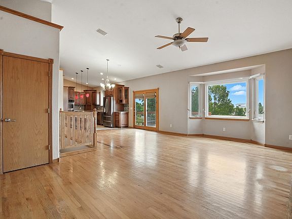 Exceptional HOME! 5-bedroom 3-bath home with tons of amenities. Wonderful wood flooring in living, hallway and master bedroom. The kitchen is a custom design with tons of custom-built cabinet space, flooring, main counter, wine rack, spice rack, double ovens, appliance garage, herb garden space and more. There is a lighted walk-in pantry for easy access to all of your supplies. The living area is open with display areas for holidays or favorite items, vaulted ceilings, front hall closet, gated entrance with wood railings to basement, quick access to the large main floor deck system, and more. The master suite includes trayed ceiling, canned lighting, dual vanities and jetted tub. Main floor laundry and connections for a second laundry downstairs. The utility room is oversized with built in shelving for storage. A walk out basement entrance provides access to the hot tub, play area and storage shed.