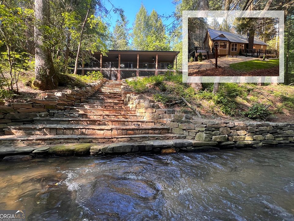 Gentle Riverside Retreat! Nestled on the banks of the Soque River, this beautifully remodeled and fully furnished 3-bedroom, 3-bathroom home features a bonus room and two spacious living areas, offering a rare opportunity to enjoy level riverfront living with both scenic views and the tranquil sound of flowing water from the comfort of your home. The river is just steps away with easy entry, wadeable water stocked with trout; this property is a true outdoor escape. The main level features vaulted ceilings and newly added tongue-and-groove walls as part of the home's extensive renovation. A stunning open-concept kitchen is highlighted by sleek black cabinetry, granite countertops, and stainless appliances. The adjacent living and dining areas flow seamlessly, creating a warm and inviting setting for everyday living or entertaining. All three bedrooms are comfortably situated on the main level, while the fully finished basement offers additional living space, a second fireplace, and endless flexibility for guests, recreation, or work-from-home needs. The third full bathroom is also located in the basement, adding convenience and function to the lower level. This home has been extensively updated, including new siding with house wrap, new windows, new Trex decking, updated bathrooms, new and refinished flooring, a new garage door, added insulation, and sealed skylights. Roof screws and seals have also been replaced. New Outdoor fire pit and walkway. Almost all doors have been replaced. New HVAC & ducts in basement. High-speed HEMC Trailwave internet ensures you stay connected in this peaceful riverfront setting. Located just 14 minutes from downtown Clarkesville, you're close enough to enjoy local shopping and dining, while still far enough away to experience the peace and privacy that makes this home truly special.