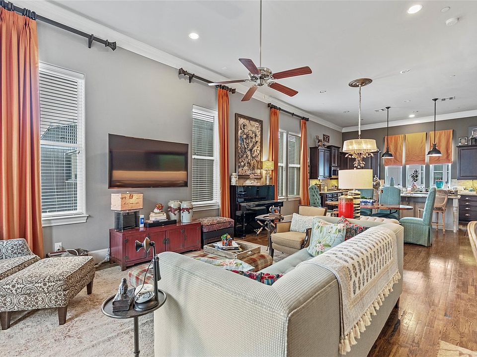 Custom designer lighting throughout the home, including a statement chandelier in the dining area and Restoration Hardware overhead lights in the kitchen. A beautifully designed bar is cleverly integrated into the formal dining space—perfect for entertaining guests. The powder room is a showstopper with a chandelier and a stylish decorative mirror. The 4th-floor room has been freshly painted, with upgraded bathroom fixtures for added comfort and modern appeal.