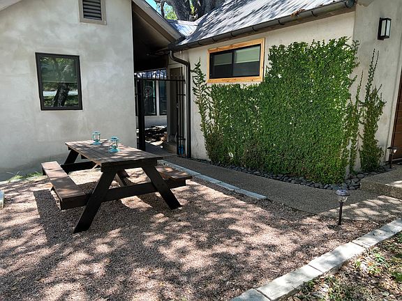 THIS IS A FULLY FURNISHED RENTAL. Can consider it unfurnished, but would need to talk through timing and lease length details, etc. Location, location, location! This magical Bouldin Creek property is a hidden gem just minutes from everything. A short stroll to hike and bike trail, dog parks, and everything downtown has to offer. 15 min walk to S. 1st and Congress Ave restaurants, bars and shops. A bike ride away from Barton Springs pool and Zilker Park (ACL, SXSW, Kite Fest). Huge oak trees shade the entire property keeping things cool in the summer. Tons of windows and floor-to-ceiling doors let in the beautiful morning light, but protect from harsh southern exposure. Inner gated courtyard provides all the privacy you need. Oiled hardwood floors and designer encaustic tile in kitchen and 2 baths. Bedroom #1 has an en suite full bath, reach-in closet, a queen bed, nightstands and a small desk. The dedicated office, located between living room and Bedroom #2, has a comfy American Leather sofa and a sit/stand desk. Bedroom #2 has a queen bed and nightstands, with a full reach-in closet in the adjacent office. It also has a private deck and sliding doors. Rear full bath features double sinks and custom walnut vanity. Gigabit internet. Driveway parking and plenty of on-street parking. On a dead-end street, this is a truly magical location that backs up to Bouldin Creek East, providing a secluded, shady oasis in the middle of the city. Walk everywhere! \Washer/dryer on premises. We love and take great pride in our home and are seeking conscientious renters who will care for it as we do. Note the numbers on the listing do not include separate studio on the property. Please request an application if interested. Feel free to contact with any questions or concerns. Utilities not included. Includes landcape maintenance and pest control. Application required through Zillow. no smoking