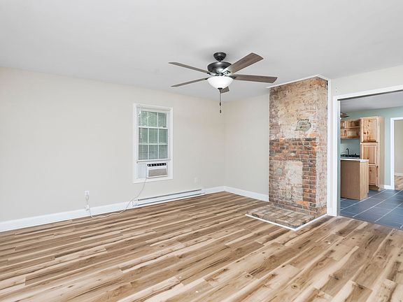 A drive by of this one just won't do! This heritage building is under new ownership and new management and looking toward the future with you! Stud up renovation has maintained some of the buildings original character but brought it into modernity. This second floor unit opens to the handsome living room with new laminate hardwood flooring throughout. Original chimney has been exposed to offer a unique and attractive decorative statement. Kitchen off living room has handsome new slate colored flooring and new natural stained wood cabinets. Stainless steel appliances, including stove, refrigerator, dishwasher and microwave provided. Center island topped with butcher block offers a casual dining setting for two. Front bedroom is nice and bright and features his and hers closets siding the mantle from an original fireplace. Back bedroom is equally spacious with a larger closet and laundry room attached with washer and dryer provided. The full bathroom has also been fully updated and shares the same ceramic tile as the kitchen. New tub, shower surround, vanity, mirror and lighting. Linen closet in bathroom. All room have ceiling fans. Tenants at this location pay their own electric only. Water, sewer and trash are included. Window a/c units are provided. This is strictly a non-smoking, no pets unit. Call Property Management of Virginia today!