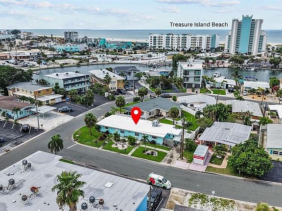 Walk to the Beach in minutes, it's literally 2 blocks to the beach, restaurants & shopping! Own the dream in Treasure Island with this phenomenal duplex in a walk-everywhere beach community. Both units are rented & completely renovated and turnkey: 2BR/1BA: Updated kitchen, new appliances, fresh paint, newer washer/dryer, patio, new HVAC (2024), covered carport. 1BR/1BA: Updated kitchen, appliances, fresh paint, fully furnished, covered patio, newer HVAC (2022). Property highlights: 2021 roof, block construction, irrigation w/ reclaimed water, newer fencing w/ gated separation, terrazzo floors, lush landscaping, keyless entry, and owner closets. Whether you’re looking for strong rental income or to live in one unit and rent the other, the possibilities are endless. A rare investment gem in one of Treasure Island’s most sought-after communities. Just steps to the sand, restaurants, and shopping-- Don't miss out!!!