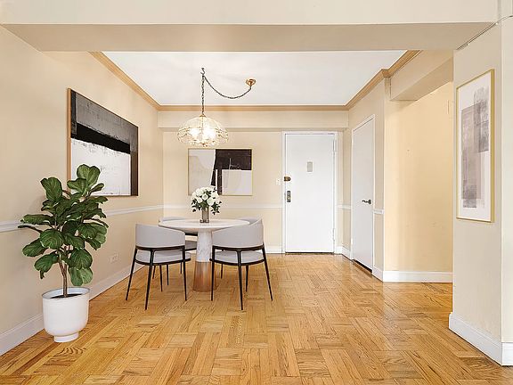 Chasing sunsets with southwest exposure atop the 9th floor of the Barclay Plaza. Perfect floor plan with an entry foyer works perfectly as a dining room. Windowed renovated kitchen with custom wood cabinets, granite countertops and high-end stainless steel appliances including a slim Liebherr refrigerator. Expansive primary bedroom with an impressive walk-in closet. JR bedroom does not share a wall, offering privacy and convenience. The bathroom is updated with porcelain tiles. Custom radiator cover and beautiful solid oak hardwood floors throughout. The Barclay Plaza is a very desirable concrete, fireproof/soundproof coop building. Residents enjoy a full staff with a 24-hour doorman, a live-in resident manager, a clean and modern lobby, renovated hallways, central laundry room, storage and indoor garage w/waitlist. Spectrum bulk rate available. New windows throughout replaced just a few years ago. Located just 1 block away from the well-rated PS196 school, less than 2 blocks to the express and local 71st Ave trains, supermarkets, movie theaters, Starbucks, shopping and diverse dining options on Austin St and the LIRR is in close proximity.
