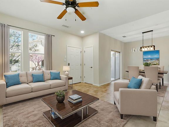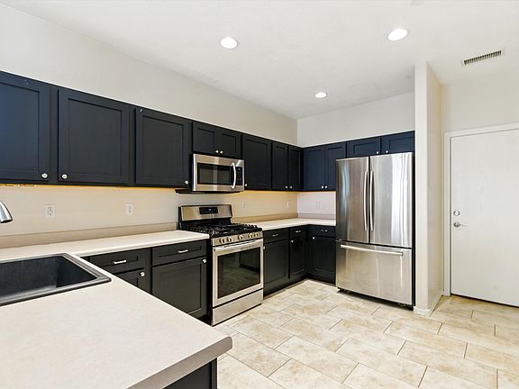 Welcome to this charming three-bedroom condo with a two-car attached garage, blending functionality and style! The open-concept layout features expansive windows and a lovely gated patio that extends the living space. The spacious kitchen includes a pantry, stainless steel appliances, ample cabinetry, and room for an island, perfect for culinary enthusiasts. One bedroom is conveniently located on the main floor with an adjacent 3/4 bath, ideal for multigenerational living. Enjoy the convenience of a lrg upstairs laundry room, & refrigerated air. HOA coverage for exterior maintenance, remote security gate & access to the community center and gym. This fantastic location is near KAFB, Sandia Labs, shopping, and major thoroughfares.