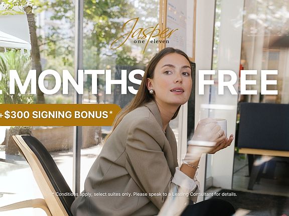 - Special offer! Get Up to 2 Months Free Rent + $300 Move-in Bonus!* - *Select Suites. Conditions apply. Please speak to a Leasing Consultant for details. Call Today.