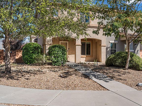 Experience the charm of this two-story townhome nestled on a corner lot in the sought-after Presidio Gated Community! This home features 2 bedrooms and 2 baths, including a convenient Jack & Jill. With 1,163 sq. ft. of living space, recent upgrades include a brand-new roof, refrigerated air unit, and plush new carpeting. A tankless water heater for convenience and timeless granite countertops built to last. The HOA grants access to a well-equipped clubhouse with a gym, plus beautifully maintained common areas with greenery and landscaped parks. Situated on one of the largest lots in the community, this townhome also includes a 2-car attached garage. Conveniently located near ABQ Uptown, restaurants, and shopping centers. Don't miss out on this immaculate gem! $1,000 closing paint credit.