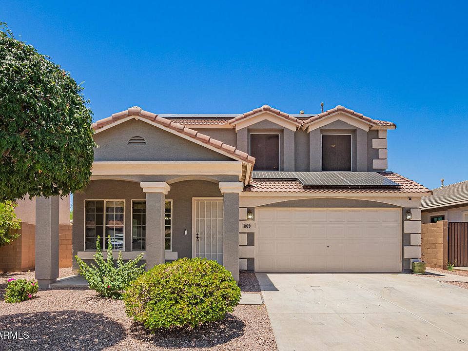 Priced to sell! This light-filled home features a neutral palette, laminate flooring on the main level, ceiling fans in every room, and great storage under the stairs and in the kitchen. The kitchen includes a walk-in pantry, new dishwasher (2025), and new electric oven and microwave (2024). Formal living and dining areas plus a comfy upstairs loft offer flexible living space. The primary suite has a huge walk-in closet, double vanities, garden tub, and separate shower. New A/C and heater (2024), newer water heater, surround sound wiring, leased-solar and a gated pool with a gazebo for entertaining. All the updates are done—you just need to move in and make it your own!