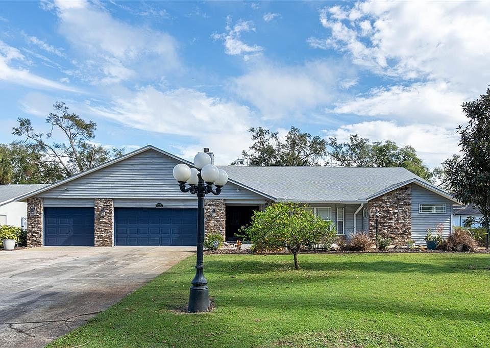 Welcome to this beautiful 3-bedroom, 2-bath, in the desired community of Riverside in Leesburg. This home offers an expansive 3-car garage with ample space for a workshop and has an additional storage in the back of the house—perfect for all your hobbies and organizational needs. Inside, you'll find an upgraded gourmet kitchen featuring two islands and stainless steel appliances, ideal for both entertaining and everyday living. The open floor plan includes formal living and dining rooms, while the family room provides a cozy atmosphere with a charming wood-burning fireplace. Step outside to your own private oasis—a beautiful backyard featuring a screened-in in-ground pool complete with a relaxing waterfall. The pool area also offers convenient bathroom access, making it perfect for entertaining or relaxing in comfort year-round. Plus, the entire property is fenced, providing extra privacy and security for you and your loved ones. The lanai is an added bonus, featuring a split AC unit to ensure comfort, whether you're soaking in the sun or enjoying evening gatherings. The master bath has been thoughtfully remodeled with separate vanities, a spacious walk-in shower, and quartz countertops. Plus, enjoy the convenience of newer sliders throughout the home, offering easy access to the outdoor spaces. Nestled in a serene, tropical setting, this home strikes the perfect balance of privacy and convenience. It's located just minutes from local attractions, destination towns (20 mins to Downtown Mt. Dora and 15 mins to Downtown Eustis), major highways, restaurants, and shopping—everything you need right at your fingertips. Schedule your private showing today to see why this home truly offers the best of Florida living!