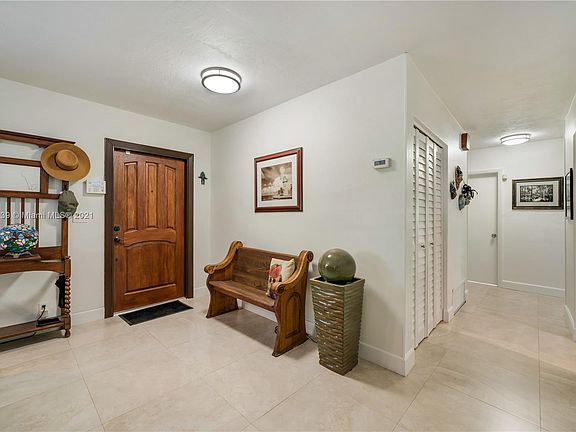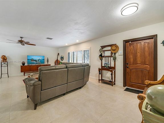 This well appointed and tastefully updated Pine Shore 4 bed 3 bath home is move in ready! Recent improvements include 2021 Roof, full impact windows and sliding doors, renovated bathrooms with custom cabinetry, updated closets, and 24" porcelain tile throughout. The custom kitchen features stainless steel appliances, quartz countertops, and a large custom pantry for storage. The master suite showcases a luxurious bathroom, custom Elfa closet system, and wood plantation shutters. Lush native landscaping creates a private and inviting backdrop to enjoy the screened in pool and patio. In addition to Mango and Avocado trees, the spacious 15,000+sf lot has a 12x20 concrete pad, ideal for boat storage and a storage shed.