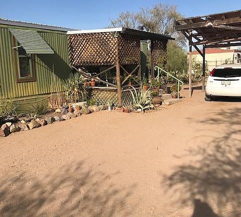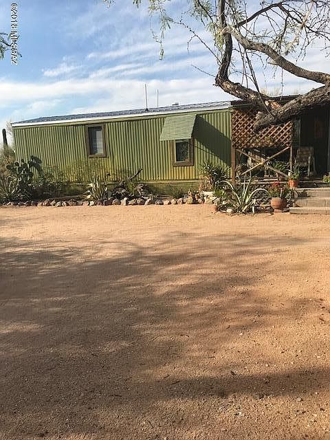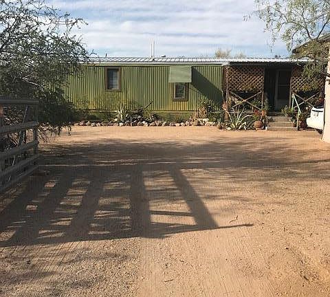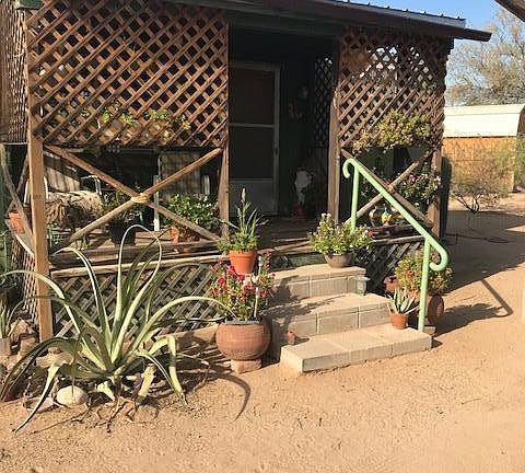 Darling little artist's retreat nestled in the desert on 1 full acre. Recently remodeled 14 X 53 single wide with beamed ceiling addition with large windows that allow viewing the desert all around you. Wrap around patio for relaxing and stargazing at night. Property has newer roof, land has mature saguaros and plenty of wildlife. Come relax and enjoy your natural desert surroundings.
