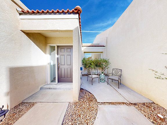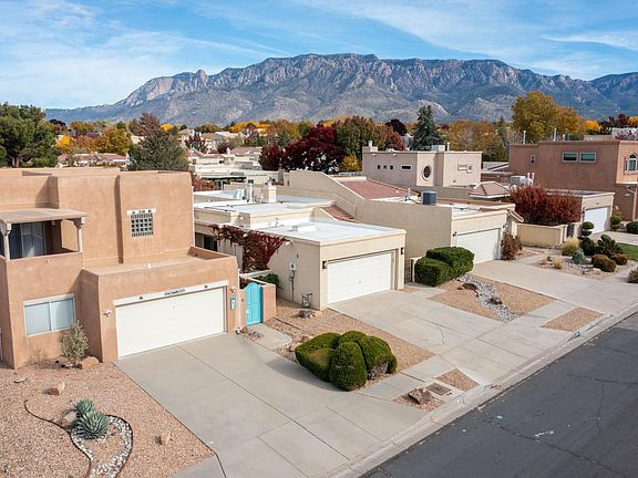Completely Remodeled, Move-In Ready, One-Story, One-Owner Townhome with 2 Primary Suites, Prime NE Heights Location. Beautifully redone with open floor plan, high ceilings; new flooring, paint, baths, lighting, blinds. Gourmet kitchen offers SS appliances, double wall ovens, gas cooktop, separate pantry, specialty sink & rolling butcher block island with seating. Spacious bedrooms; a primary with backyard access, spa bathroom with freestanding tub and dual vanities; another BR has exquisite en suite. Relaxed outdoor living with multiple patios, gated front courtyard, low-maintenance, low-water landscaping & mature trees. Oversized 2 car garage has insulated door, fridge, storage space. Walk to neighborhood park, schools or golf cart to Tanoan Golf Course. Must see!