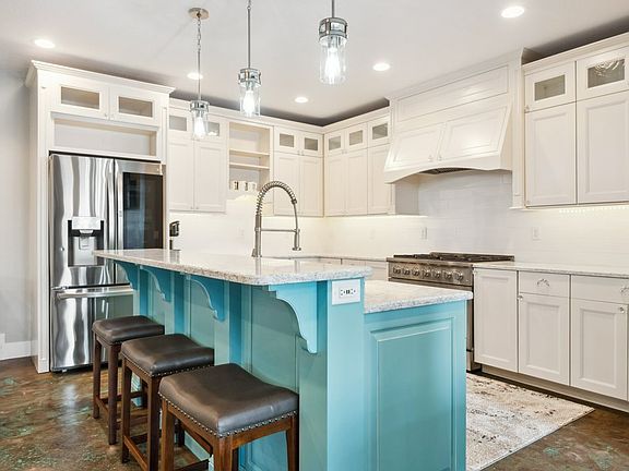 Now for the ADU/GRANNY FLAT: The front door is accessed behind the garages and opens into another air conditioned, open floor plan living space. The kitchen area has an island w/farmhouse sink, cabinets to the ceiling, an under-cabinet microwave drawer, and a stylish free-standing 6 burner gas stove/oven. Counters are quartz or granite Currently the dining area hosts a pool table next to living room area. On the wall next to pool table is plumbing to add a wet bar. A 3rd toilet/bidet combo in bath. The entire floor is stained concrete, again with hydronic radiant heat in the floors. The laundry room with 3rd set of washer dryer also houses the utility systems for both units. There is no direct access from upper unit to ADU, but both can be accessed from garages.
