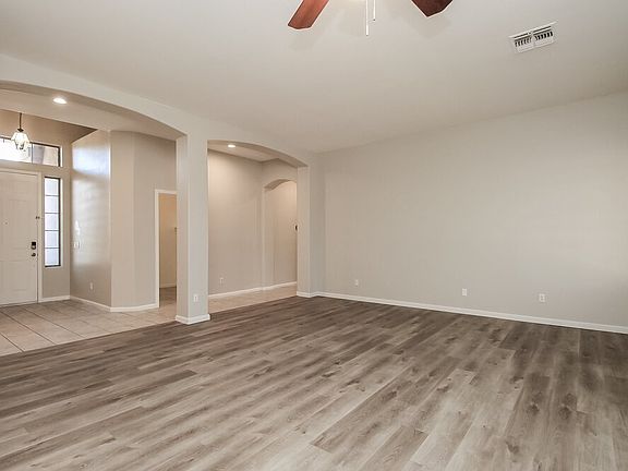 You'll feel right at home in this four-bedroom, two-bathroom Mesa rental home with unique features, including a two-car garage, large fenced backyard, and bonus room. The living space features an open floor plan, a ceiling fan, a vaulted ceiling, and vinyl plank flooring. The natural light and skylights illuminate this space. The eat-in kitchen features a walk-in pantry, stainless steel appliances, quartz countertops, and a kitchen island. The main bedroom boasts a walk-in closet, wood-look blinds, and a private bathroom with a walk-in shower, a garden tub, and dual vanity sinks. The patio provides you with a tranquil space to relax. Enjoy the conveniences of an RV gate, smart home functionalities, and central HVAC system, too. Contact our team today to tour this 2,451-square-foot rental home.