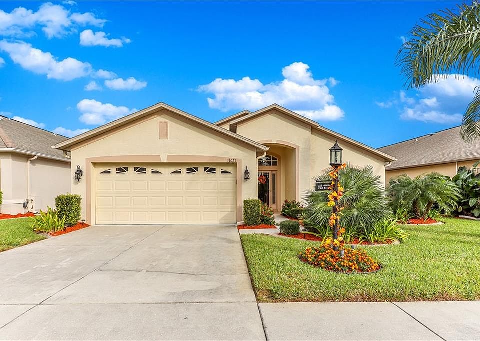 Amazing opportunity to own this stunning move in ready Lennar Inverness model 2 bed, 2 bath home! Mrs. Clean's pride of ownership is obvious from the moment you pull up! Beautifully landscaped yard welcomes you to the front entry. As you walk in you are immediately greeted with a relaxing tropical Florida style home. Newer interior paint throughout makes the 10' vaulted ceilings bright and inviting! The kitchen includes granite countertops, large opening to keep you included while entertaining, pantry, & newer appliances! The large master suite will be somewhere you will love to end your day with access to lanai, completely updated bathroom, and walk-in closet! Enclosed lanai with conservation area behind is perfect for company or just enjoying FL beauty! With no carpet in this home, keeping it tidy is a breeze! A/C in 2016! Sun tubes to add extra natural light! Maintained home in the premier gated Heritage Pines community allows you to stay as busy as you want! Community pool, golf course, clubhouse, tennis courts and more! Check this home out today!