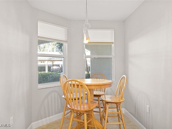 Welcome to your serene retreat in the heart of Gulf Reflections, a charming gated community where comfort meets convenience! Just a mere 3 miles from the sun-kissed shores of Fort Myers Beach and the natural wonders of Sanibel, this spacious first-floor condominium offers an ideal blend of relaxation and modern living. Step inside to discover a well-designed open concept floor plan that perfectly balances style and functionality. As you enter, you'll be greeted by an inviting eat-in kitchen featuring a breakfast bar, granite countertops, and elegant white enameled cabinetry that adds a touch of sophistication. The newly installed stylish flooring and lighting create a warm and welcoming ambiance throughout the home. One of the standout features of this property is the screened lanai, where you can bask in the southern exposure while enjoying picturesque views of the lake and soothing water fountain. Imagine sipping your morning coffee or unwinding in this serene outdoor space perfect for those balmy Florida evenings! The spacious primary suite is complete with an updated bathroom and a roomy walk-in closet that offers plenty of storage for all your essentials. The split bedroom design ensures privacy for you and your guests, making it an ideal setup for entertaining or simply enjoying a peaceful retreat. Practicality meets convenience with an in-unit laundry. This condo also includes an assigned carport space and a generous storage closet just outside your front door. Gulf Reflections is a boutique community with just three buildings housing a total of 86 units. The community clubhouse offers a range of amenities including a heated pool, spa, exercise room, meeting area, and BBQ grills perfect for social gatherings or a relaxing day in the sun. Location is key, and this property is perfectly positioned less than a mile from Health Park, local shopping, dining and entertainment. Enjoy the tranquility of living off the main roadways while still being conveniently close to all the necessities. Don't miss this opportunity to own a piece of paradise in Gulf Reflections. With low condo fees and a wealth of amenities at your fingertips, this charming community is waiting to welcome you home!