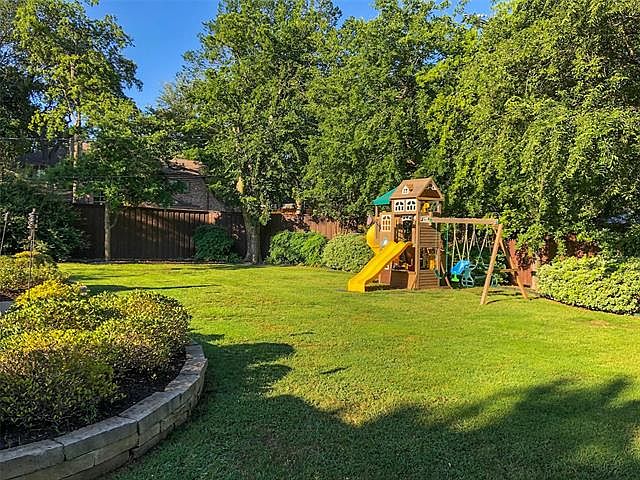 Escape to this lush Texas sized back yard with mature trees and patio for entertaining. Home is updated throughout, with a great open layout, and separation of bedrooms. Spacious living area has vaulted ceilings and skylights to create natural light. Updated kitchen boasts commercial grade gas range, glass tile backsplash, and large island. Private study offers quiet WFH space. There are other areas for virtual learning as well. Amazing owner suite has completely updated bath, including soaker tub and frameless glass shower with double shower heads. Driveway gate creates both security and privacy. Amazing location in the heart of Dallas near major highways and minutes from shopping, dining and entertainment.