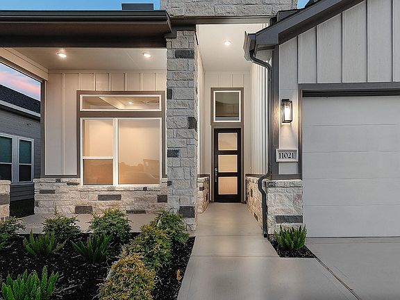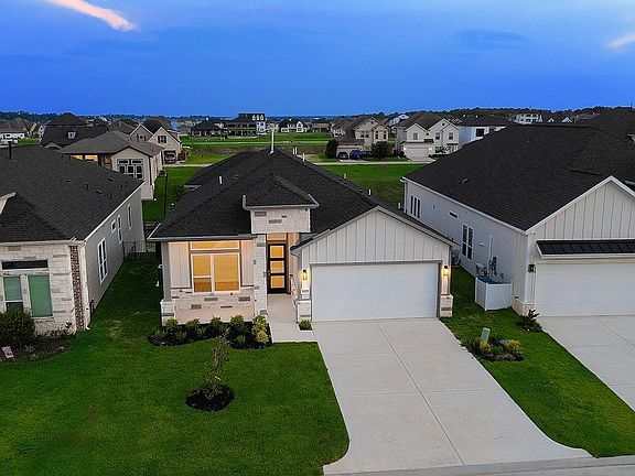 Waterfront LevelTX Builders "Auburn" plan in the gated community of Lake Breeze! This spectacular one story home features soaring ceiling heights, luxury vinyl plank wood-look flooring, soft close cabinetry and drawers, a tankless water heater, spacious laundry room with sink, water purification system and large windows that provide serene views of Lake Conroe. The open concept island kitchen with granite counters, GE appliance package, under cabinet lighting, walk-in pantry and breakfast bar overlooks the dining room and den with doors that lead to the covered patio. Owner's retreat has a luxurious bath with free standing soaking tub, frameless shower and dual sinks; two additional bedrooms with en-suite baths, plus a study with French doors. Two car attached garage with 18' doors! Launch your kayaks and paddle boards onto the lake, explore neighborhood amenities like the basketball court, playground and area pool, and enjoy being in close proximity to shopping and restaurants!