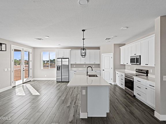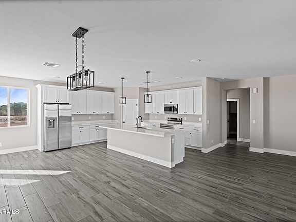 2025 BRAND NEW HOME BY CV HOMES! This beautiful 4 bedroom / 2.5 bath is on 0.8 acres of land with NO HOA and located on a corner! The home features an inviting and open floorplan with wood-look tile throughout the kitchen includes a large island, quartz countertops, stainless steel appliances, 42-inch cabinets, and a walk-in pantry. Top of the line black fixtures throughout the home, split floor plan, 9 ft ceilings etc. The double French doors lead to a covered patio to enjoy the mountain views with plenty of space for your RV and toys! This lot provides endless opportunities for your own landscape/design.
