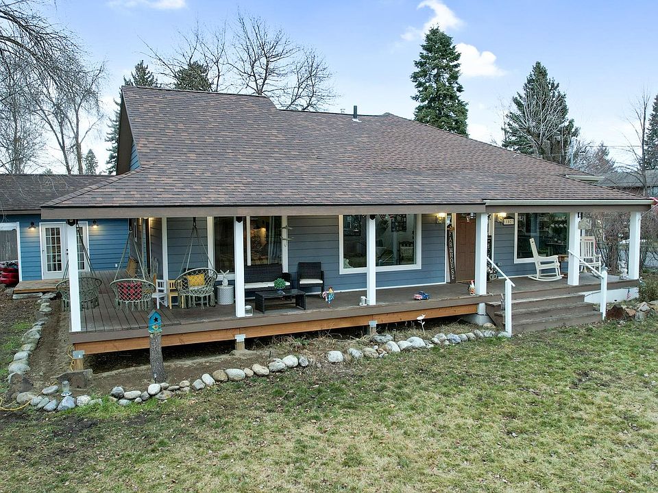 Beautifully updated Spokane Valley Rancher on a large corner lot! This well-kept home offers 4 bedrooms (2 non-conforming), 2 bathrooms and 2,652 sq ft with plenty of room to expand! The main floor features a kitchen complete with stainless appliances, custom wood beam ceiling accents, a built-in bar and plenty of storage and counter space-plus two bedrooms including your master bedroom with updated LVP flooring, custom barn-doors and a spa-like en suite. Lower level includes two large bedrooms plus a large family room and outside access which could double as a rental or mother-in-law conversion! Step outside to your wraparound porch to the backyard that features a 12x16 "she shed" with two interior lofts, electricity and plumbing--perfect for working from home or an ideal space for your hobbies! The .36 acre lot has ample space for RV Parking or room to build your dream shop-backyard has 16 ft gate opening from the main rd for easy access! Just minutes from downtown Spokane, Coeur d'Alene and all amenities!