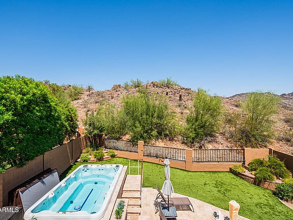 Welcome to your personal paradise. This immaculate 4 bedroom, 3 bathroom home blends elegance and comfort with breathtaking mountain views. The open layout flows effortlessly into light-filled living areas. The beautiful kitchen includes sleek countertops and high-end features certain to inspire culinary creativity. Unwind in the spa-like primary bathroom, where tranquility wraps around you like a warm towel. Outside, your private backyard oasis awaits—featuring an oversized built in swim spa with wave current perfect for an invigorating workout or simply a rejuvenating soak while gazing at the majestic mountains. With energy-saving solar panels, this home delivers efficiency without sacrificing luxury. Every detail has been meticulously maintained, making this a true showpiece.