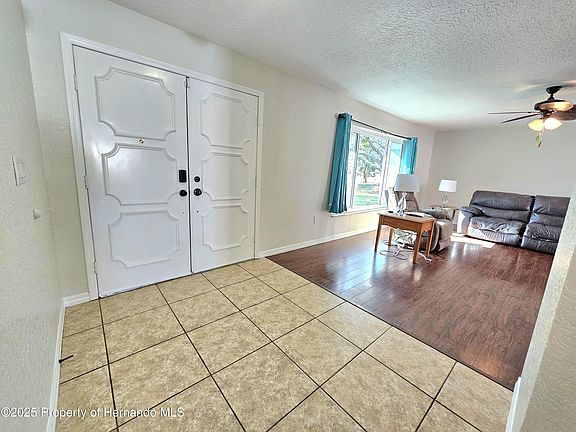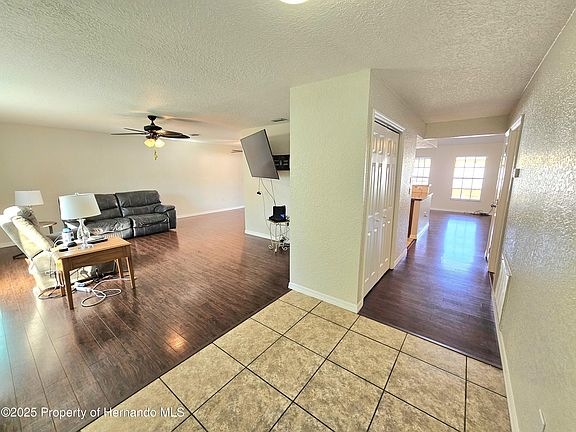 This centrally located home in Spring Hill has all that you need! Just minutes away from schools, shopping and the Suncoast Parkway! Walk in through the double front doors and into the foyer- to the left is the family room, dining room and primary suite with vinyl and laminate flooring, dual vanities, walk-in closets, private commode room with a tiled walk in shower, and sliding glass door leading to the back lanai. From the formal dining room, you'll find a sliding glass door which overlooks the screened in back lanai. The back yard features a newer in-ground heated, salt-water pool with bubbler shelf and waterfall surrounded by a brick paver deck. The kitchen comes complete with all appliances and has been recently electrically re-wired. The nook area also over looks the pool and has another sliding glass door for access to the pool. Other notable features are the beautiful and mature oak trees on the property, corner lot, New Roof (2024), freshly painted interior and exterior, a newer electric panel, white vinyl fence around back yard, new front window in family room, pre-wired alarm system through ADT, gutter system around entire home and more! Call today for your personal showing!