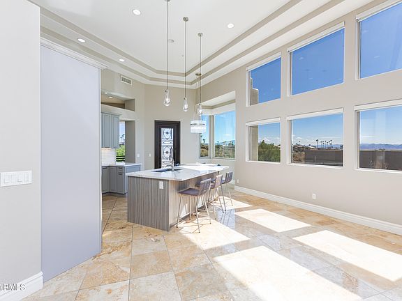 Discover refined living at 11026 N Pinto Drive, where 2,444 sq ft of thoughtfully designed space meets the natural beauty of Fountain Hills. This single-level home welcomes you through custom iron doors into an interior featuring rich wood flooring in the bedrooms and elegant travertine tile throughout. The well-appointed kitchen showcases quartz countertops, custom cabinetry, and high-end stainless steel appliances, enhanced by convenient motorized blinds for easy light control. The adjacent family room offers a comfortable gathering space with a fireplace, custom built-ins, and electric blinds for added privacy and ambiance.