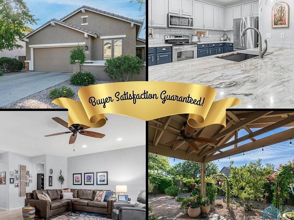 Buy this home and if YOU ARE NOT SATISFIED with your purchase in the first 12 Months I'LL BUY IT BACK or SELL IT FOR FREE. NO GIMMICKS! Call listing agent directly. *Bonus: Don't get stuck owning two homes. BUY THIS HOME and I'LL BUY YOURS! If you're looking to buy a home but have one to sell, you're finding yourself in the same dilemma that most homeowners find themselves in. To discuss the details of this incredible option or for a free report on this exclusive offer, call the listing agent directly. AWESOME HOME in a beautiful area. Move in condition. Professional landscape with an extended covered patio, great for Arizona lifestyle. Beautiful kitchen, newer decorator granite and updated trendy cabinets White wood shutters, 9' ceilings for a open spacious feel. Open concept floorplan with ample great room. Backyard is stunning with easy care flowering plants and paver walking paths. Corner lot for extra privacy and no two stories behind looking to a well landscaped area! Near a great playground, perfect for kids or walking dogs. Trendy Neighborhood near shopping, freeways, and employment corridors. Fabulous home fantastic area. This home has it all! Welcome Home.