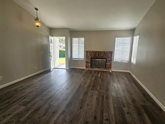 Single story home located at the end of a cul-de-sac. 3 bedrooms, 2 bathrooms, Living room with fireplace. Interior and exterior are freshly painted. Laminate flooring throughout the home. New mirrors in both bathrooms, new microwave in kitchen. 2 car garage with direct access, Spacious backyard with mature orange tree, spacious covered patio area great for entertaining.