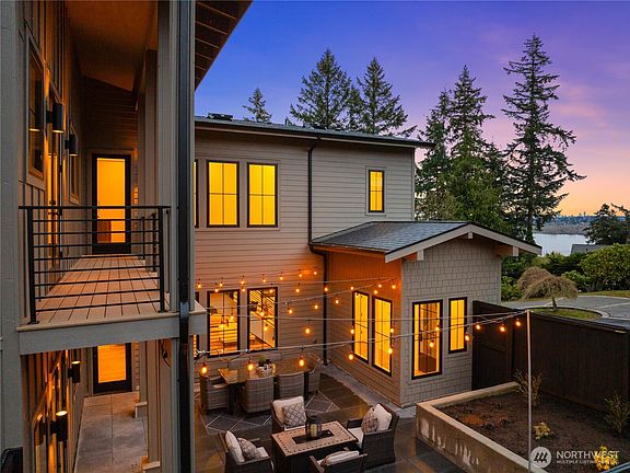 Just completed, this contemporary home by The Snyder Co. transforms living into an art form. Natural light and sweeping views of Lake Washington, the Cascades and the Bellevue skyline define a home that’s both sophisticated and deeply livable. A see-through fireplace anchors the main level, while designer finishes—wide-plank hardwoods, matte black accents, striking quartz slabs and statement lighting elevate every space. The kitchen with a scullery is built for seamless entertaining. All bedrooms offer lake views, including the primary suite with a private deck, wet room and heated floors. A fenced patio with twinkling lights sets the stage for intimate gatherings, while exclusive community beach access enhances the home’s Northwest appeal.