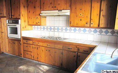 Located at the top of a quiet street, this 3 bedroom home has sweeping canyon views and the serenity that comes with peaceful surroundings. From the decorative pavered driveway and walkway, one steps into a spacious living room with cozy fireplace and groove and peg flooring, reminiscent of a cabin in the woods. This feeling is intensified by the nice knotty pine cabinetry in the kitchen, with great tiling and view into the lovely brick patio area of the backyard - which is perfect for barbecues. There has been some cosmetic improvements to the home, but a savvy buyer can easily make their own artistic improvements to truly compliment this one of a kind home.