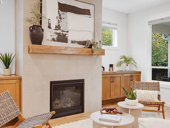 Gorgeous modern living on a corner lot! This 3 bedroom, 2.1 bathroom, built in 2021, offers a flexible, open floor plan, large kitchen island, and stunning gas fireplace with built-ins - perfect for entertaining and easy living. Private primary bedroom with tranquil spa-like bathroom and large walk-in closet. Plenty of storage and large, usable landing at top of stairs. Fully fenced backyard with covered patio for year-round outdoor living. HOA includes front yard maintenance. Easy access to restaurants and shopping!