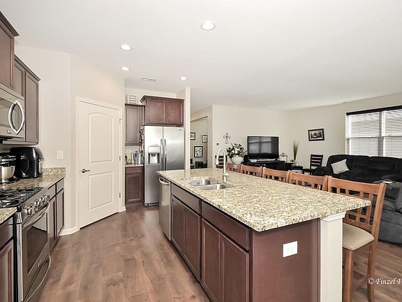 Two Years New with Custom Upgrades! Granite and Stainless Steel Kitchen with 36-inch Counters and Crowned Cabinets, Canned Lighting, Walk-in Pantry and Huge Island Overlooking Large Great Room to Define Your Own Living and Dining Areas. 9 Foot Ceilings Throughout. Spacious and Comfortable Master Suite Features Dual Walk-in Closets (Separate Dressing Room Closet Currently Doubles as At Home Office Comfortably); Master Bathroom with Dual Sinks, Step-in Ceramic Seated Shower, Linen Closet and Private Water Closet. Second Bedroom, Full Bath with Pull Bars and Flex Room/Den Round Out the Inside Living Space. RING doorbell and ADT wired security system. Defined Additional Storage, Insulated Garage, Whole Home Humidifier, and Updated Laundry and Closets. Additional Features and Upgrades Noted in Photo Captions. All this, in a Gated, Active Adult Community Offering Clubhouse, Indoor and Outdoor Pools, Tennis, Golf, Fitness Center, Billiards Room and MORE. Agent owned.
