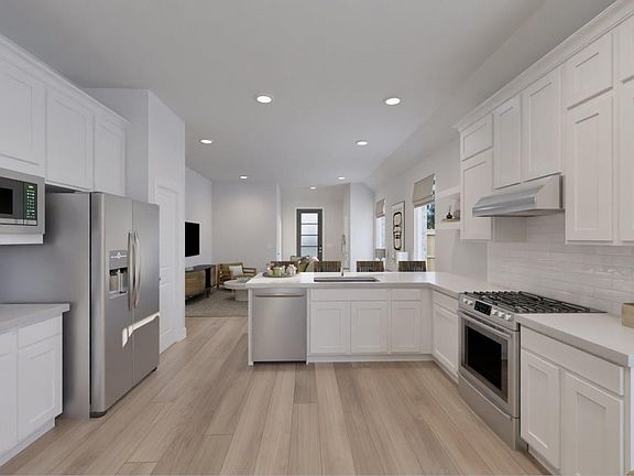 NEW! Lennar Avante Collection "Addison" Plan with Brick Elevation "C" in Emberly!  This new single-level home features a low-maintenance and modern design. An open-concept floorplan combines the kitchen, living and dining areas, with a nearby covered patio ready for outdoor entertainment and leisure. Two secondary bedrooms are tucked away to the side of the home, and the luxe owner’s suite is nestled into a private rear corner, complete with a spa-inspired bathroom and walk-in closet.