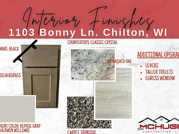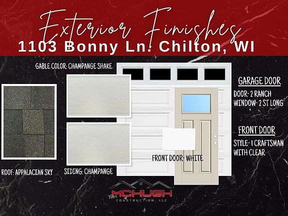 Welcome home from Tom McHugh Construction! This home is under construction!!! The 1328-CH floor plan from our CH collection, a 3 bedroom (split), 2 full bath ranch design. Standard features include insulated garage doors, fiberglass exterior doors, 2 panel interior doors, 1 egress window, central AC, basement stubbed for a future bath. Photo is computer generated. Open Houses will be held at the Model at712 Bessy on Thursdays from 5:30-6:30. Full driveway to street included (including apron), final streets are already installed.