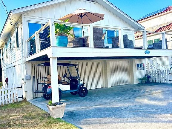 After a sun-soaked beach day, rinse off in the outdoor shower set over charming patio pavers, then enjoy the generous hangout space under the home—perfect for grilling, ping-pong, and evening gatherings.