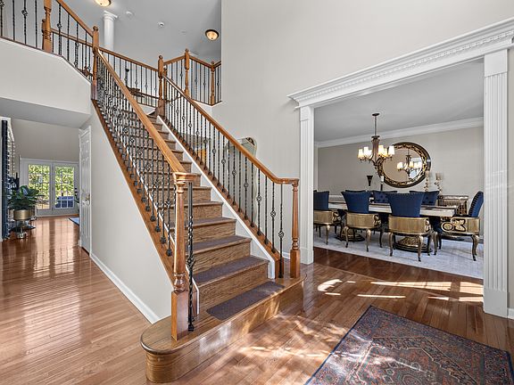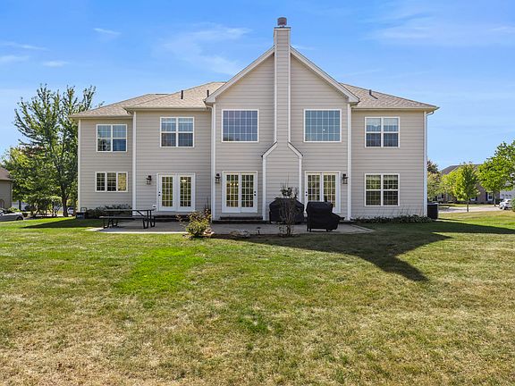 One of the largest Carmel Federal models in the Masters Collection at Bowes Creek, this home combines space, comfort, and thoughtful updates. The main floor offers a private office, dining room, and a bright living area with fireplace and a wall of windows. The kitchen features granite countertops, stainless appliances, and plenty of cabinet space. Upstairs, the master suite includes a sitting area, spa-like bath, and four walk-in closets. Recent upgrades include a roof (2024), front entry door (2022), water heater (2022), partial hardwood floors (2020), and carpet (2023). Additional highlights: a heated 3 car garage, built-in water filtration faucet in the kitchen, and an expansive unfinished basement with potential for additional living space. Set on a quiet cul-de-sac in the Bowes Creek Country Club community, residents also enjoy access to the neighborhood's golf course and amenities. Exclusions: Kitchen refrigerator (to be replaced with another unit currently in the garage), washer & dryer, large wall-mounted entertainment unit in family room, and large mirror in entrance hallway. Listing agent has ownership interest in the property!