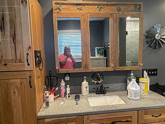 house is 3 beds down 1 up 2 bath basement unfinished there is a shower and sink that works in basement as well outside there is 9 and half acres fenced unrestricted can be separated hot tub, fire pit, tiki bar all stay 2 and half car garage apartment added on back 1 bed 1 bath living room kitchen great in law suite or rent for extra income this is in rural area septic system so no high sewer bill less than 10 minutes to shopping and hosp. about 2 miles to schools when first bought it was house an1 and half acres adjoining 8 acres and apartment was added 2022