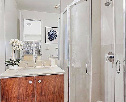 Residents can also enjoy the shared roof deck, recently resurfaced, offering panoramic views of the picturesque neighborhood. The building features quality finishes, a video intercom system for added security, and a modern elevator.