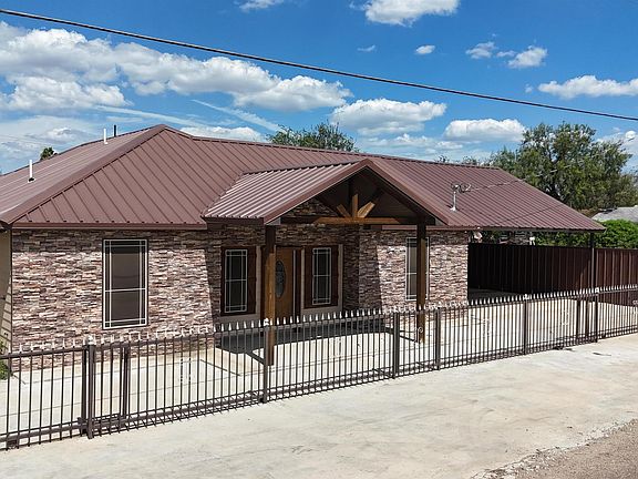 Gorgeous custom 3BR/2.5BA home featuring hardy plank siding, stone accents, a striking metal roof and a low-maintenance lot that’s fully concrete and completely fenced for privacy. Metal awnings provide shade across the property, creating a comfortable outdoor setting year-round. Inside, you’ll find tile floors throughout, granite countertops, shutters and a spacious open layout. A large entertainment area makes this home perfect for hosting family and friends during the holidays or any special occasion.