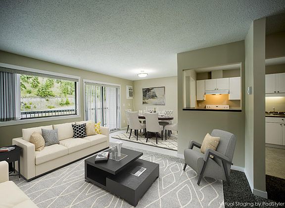 Clean bright common areasLandscaped groundsWindow coveringsIndividual thermostatsKitchen appliancesCarpeted floorsIn-suite storage