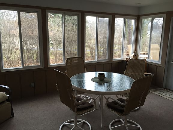 Located on approximately 3.28 acres is this nice ranch home nestled among the trees. The main level offers the kitchen with breakfast bar, dining room with sliders that lead to a beautiful 3 season room, large living room, 2 bedrooms, full bath and laundry. The finished lower level offers a large family room and 3/4 bath. All kitchen appliances are included. Enjoy out of town living with the convenience of town and all of it's amenities just minutes away. 32 x 45 steel utility building is included.