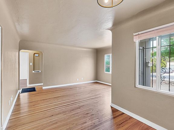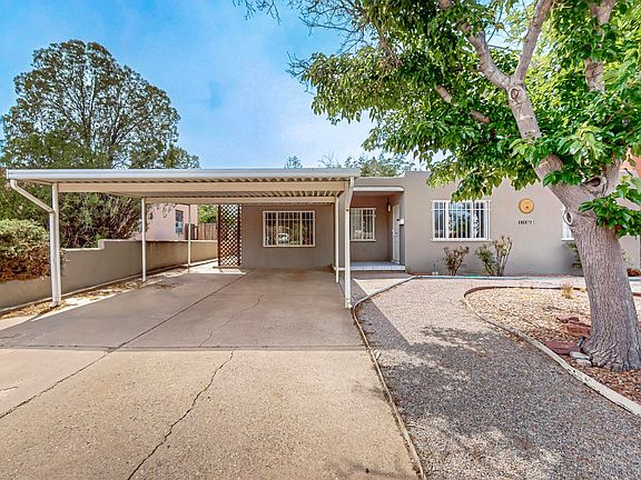 This charming 3-bedroom home in the Ridgecrest neighborhood greets you with a cozy covered front porch and easy to maintain landscaped front yard. Its light-filled interior features classic details like coved ceilings and hardwood flooring. With its double-pane vinyl windows, the home blends timeless charm with modern comfort. You'll love the natural light that fills the kitchen, creating a bright and welcoming space. The generously sized laundry room adds convenience and comes complete with a washer and dryer.Step outside to a private, oversized backyard. Landscaped and perfect for entertaining, complete with a covered patio and extra storage. Located in the desirable Ridgecrest neighborhood with easy access to freeways, UNM, Kirtland AFB, hospitals, restaurants, and more.