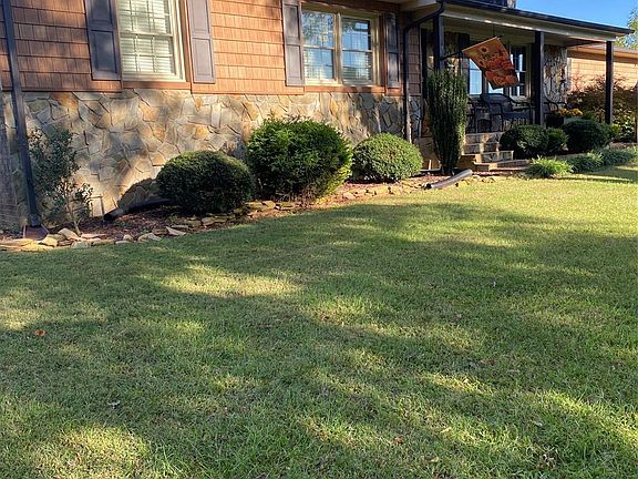 A beautiful small farm with nearly 5 Acres. House is immaculate inside and out, new windows in 23, new walk-in shower in 24. Water fountain in front of house stays, the black shelf attached to the wall in kitchen also stays. Large building for shop or other use with open space on the back for work or storage plus 2 lean-tos on the back for tractor, truck etc. Covered area on front for parking or working. There is a wood burning stove for heat in winter. Cute smaller building owner use for a sewing shop can be used for a variety of purposes. All acreage is fenced except the house and yard. The pasture has large grassy areas with some woods with a Spring fed stream that is used to water livestock. Property has 24" Bored Well that serves the house and an older drilled well that has sediment that can be used for watering grass or animals. Owner is sister of Listing Agent.