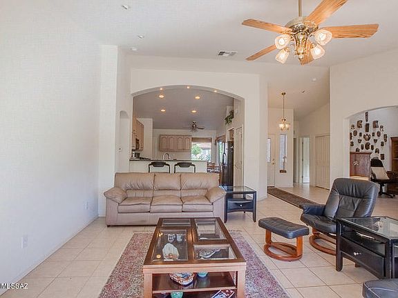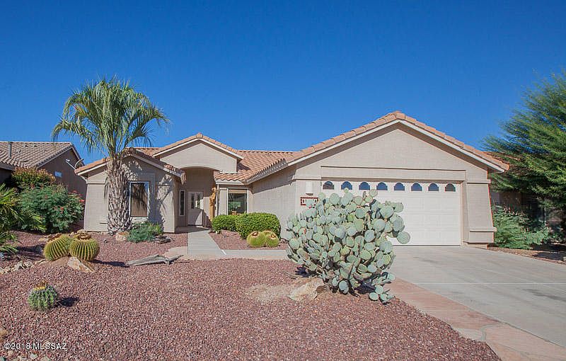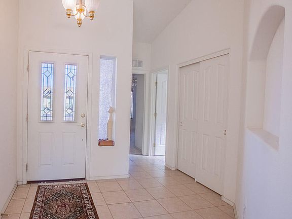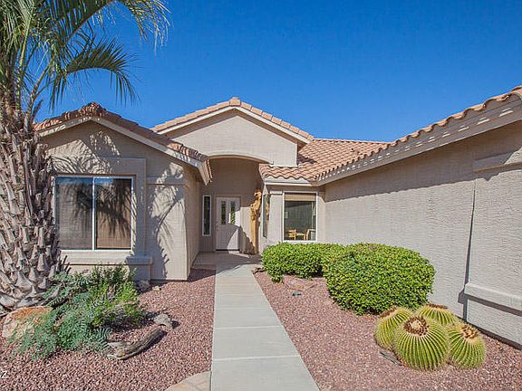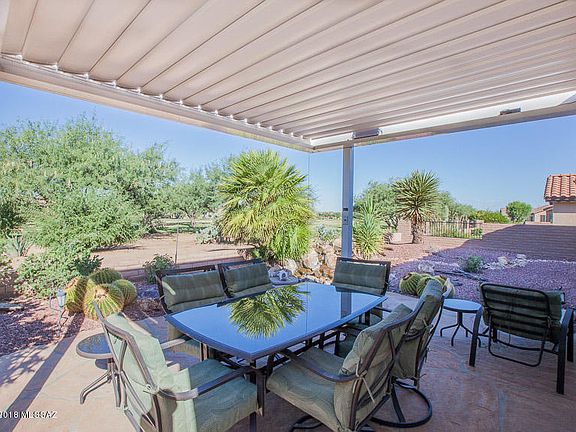 This charming 1753 sf home is the perfect size! This airy open concept home is light and bright. GOLF COURSE and SUNSET VIEWS from the rear patio with an electronic Pergola to control the exact amount of sun! Situated on Coyote #5, enjoy amazing sunsets! Common area between the golf course and your back patio wall, creates extra privacy. The kitchen has added cabinetry, stone counter tops, black appliances and a wonderfully cozy eat-in kitchen. The great room is open to the dining room and den creating golf course views from every room (including the kitchen). Master bedroom has golf course views. En suite master bath and closet, with a jetted safe tub. Here is the fun part, a clever doggy door that acts as a laundry shoot into the laundry room! Murphy bed in guest bedroom.