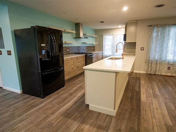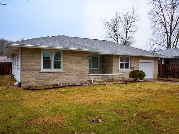 You will want to see this freshly updated 4 bed 2 bath Bedford Stone home that is in close proximity to the hospital, park, and schools. This single level charmer has been recently updated throughout. Coming in the front door you are greeted with close to 700 sq ft of open space that contains the kitchen, living, dining, and laundry area. The space was completely remodeled in 2019 with LVP flooring, custom cabinets and solid surface counter tops (all appliances stay!). Off of the kitchen, there is a set of French doors that lead to the deck and fenced back yard that also houses a good sized yard shed. All four bedrooms have fresh paint on the walls and trim. There are two bedrooms on one end of the house with a full bath between and two bedrooms on the other end of the house with a bathroom featuring a dual vanity between them. Roof was new in 2021, furnace/AC new in 2019, water heater new in 2017. Call today to view this beautiful home!
