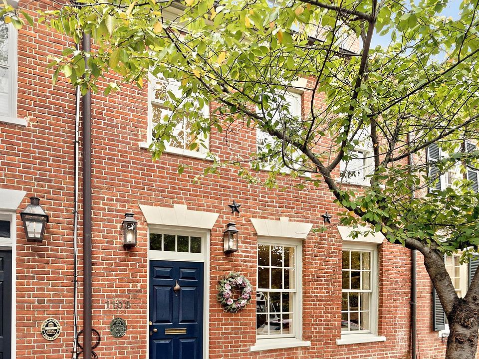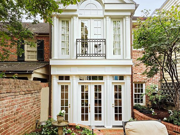 Circa 1804, this exceptional 3 bedroom, 2.5 bath home exudes historic charm with many original features including heart of pine floors, exquisite moldings, and exposed brick walls. An incredible rear addition includes a fabulous open kitchen-family room and second floor primary suite. The formal living room is a masterpiece of design with built-in bookcases flanking a decorative fireplace, while the elegant dining room is graced by an antique chandelier that conveys. At the heart of the home lies the gourmet kitchen equipped with honed marble countertops, top-of-the-line appliances, large island with seating, lighted display cabinetry, and a tall pantry. It flows seamlessly into the spacious family room offering a cozy fireplace and custom built-ins provide both a bar and ample storage, creating a harmonious blend of functionality and style. French doors open to a private brick patio/garden with mature landscaping including boxwood, a Japanese Maple, climbing roses, and pansies. Two staircases offer convenient access to the upper floors. The second and third levels feature 3 skylights, 2 well-appointed guest rooms, and an updated bath. A convenient laundry room boasts an LG washer/dryer plus a custom linen closet with lower file cabinet style drawers. The second-floor primary suite offers unparalleled comfort and style with vaulted ceilings, French doors opening to the Juliette balcony, wood-burning fireplace, Niermann Weeks chandelier, and a spa-like bath with a soaking tub plus a large seamless glass steam shower. Enjoy spending leisure time in the lower-level media/exercise room with wood paneling, exposed brick walls, and built-in seating. This home is a rare gem, offering timeless elegance and modern amenities in an ideal historic setting. Architectural measuring verifies 2585 finished sqft.