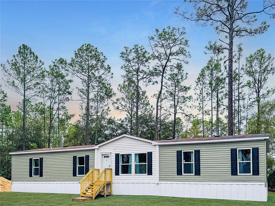 THIS HOME QUALIFIES for USDA FINANCING WITH NO MONEY DOWN , Call for details! Discover the exceptional quality of this brand-new manufactured home for 2024! LOCATED ON A PRISTINE 1.14 ACRE LOT 4 BEDROOM 2 BATH Designed with an engineered foundation, this residence offers unparalleled support and stability. Featuring 4 spacious bedrooms and 2 modern bathrooms, this upgraded home showcases superior construction with 2x2 and 2x4 framing throughout. Nestled on a stunning 1.14-acre lot, this property provides a serene mountain retreat look, ensuring your privacy with no neighbors in front or on one side. The builder has maximized the land's potential, making it perfect for your horses, donkeys, or chickens! Have the kids swing in the brand new over sized tire swings .Gather around the picnic table while roasting hot dogs and marsh mellows in the NEW FIRE PIT! This Lot is extremely PRIVATE the builder designed it that way. This home is built to last, featuring robust 3/4 inch tongue and groove OSB floor decking, the strongest ridge beams available, and a C-Channel cross beam for added support. The side walls are reinforced with 10-inch spaced studs, while the ceiling boasts R-21 insulation and strategically placed AC ducts for optimal comfort. Additional features include stud-mounted receptacle boxes and fully vented wrap-around eaves. (see agent for details). This unique property is the only one in the area offering 4 bedrooms and over 1.3 acres of land, while others are limited to half an acre at a similar price! THIS IS THE BEST BRAND NEW HOME ON THE Market!